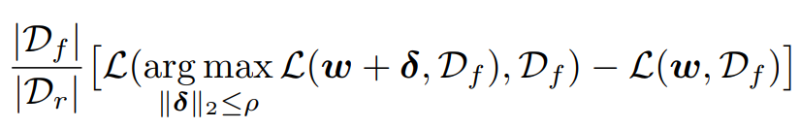 여기서 ρ는 임의로 배정한다. 논문 Ablation C1에 따르면 ρ = 2.0에서 언러닝 성능이 가장 좋았다고 한다.